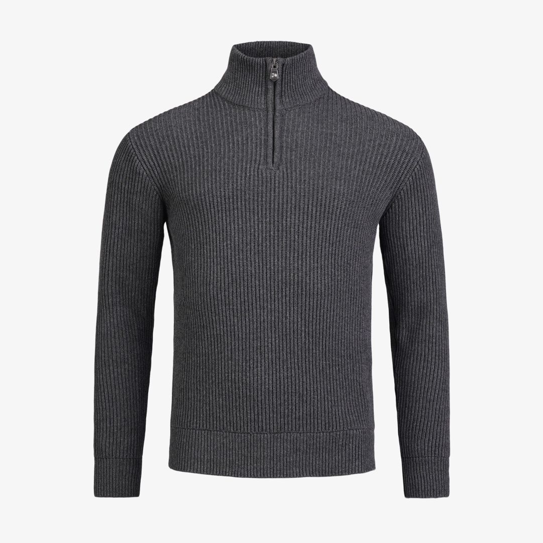 Pelle P – Mons Half Zip, Dk Grey Melange Stickad half zip-tröja tillverkad i ekologisk bomull och kashmir, och har en avslappnad passform