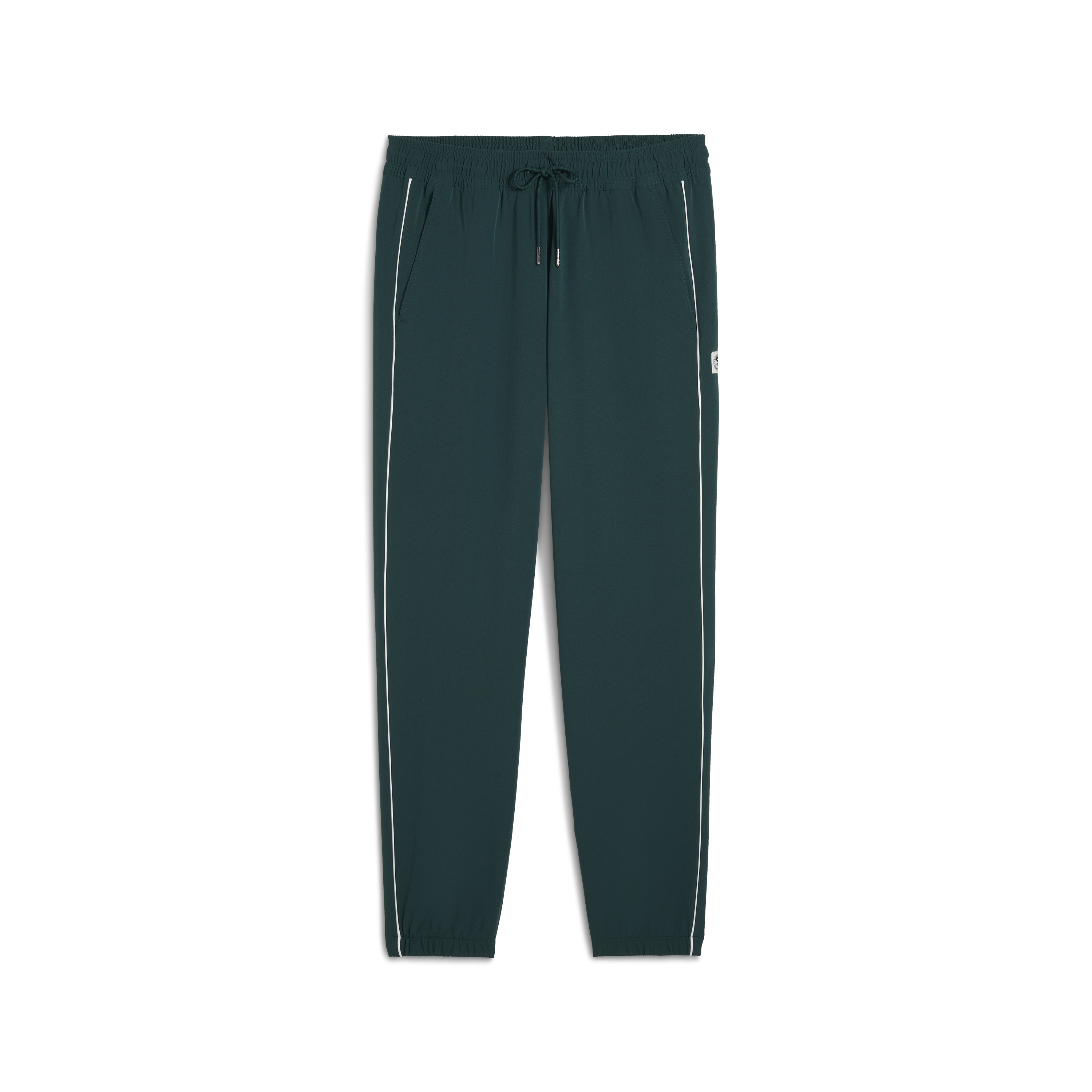 PUMA x REIGNING CHAMP T7 Golfbyxor kombinerar sportig elegans med funktionalitet och är skapade för dig som söker golfbyxor med bra passform och modern känsla. Den djupa gröna färgen ger ett sofistikerat uttryck, medan den klassiska passpoalen längs benen och den diskreta logotypen förstärker det stilrena intrycket. Dessa byxor är tillverkade av ett stretchigt dobbytyg som ger både rörelsefrihet och komfort, vilket gör dem lika passande på golfbanan som till vardags.