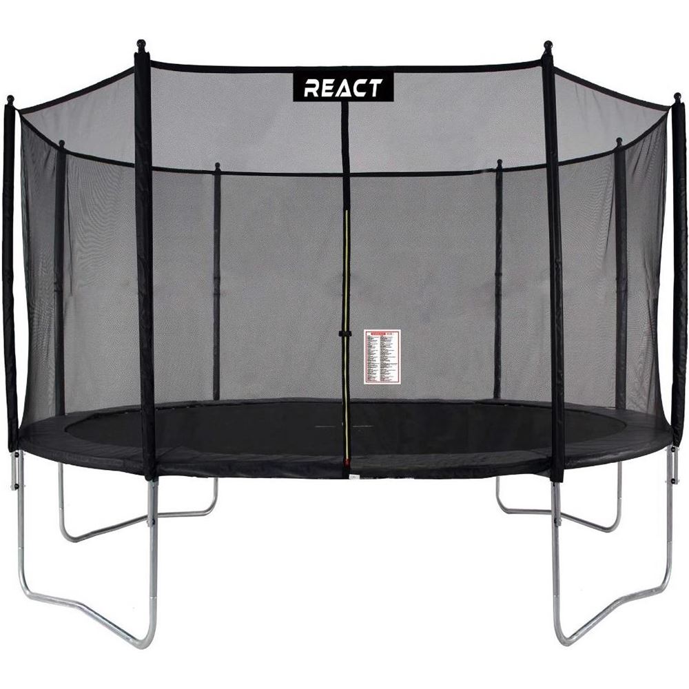 React Studsmatta 396cm med skyddsnät Kvalitetshoppning på din bakgård utan att kompromissa med säkerheten! React studsmattor är en absolut hitprodukt för sommaren i varje hem! Studsmattor är ett utmärkt sätt att ha roligt, komma i form, utveckla din hobby och framför allt utveckla ditt växande barns kroppskontroll, motorik och koordination. Den här React studsmattan har en diameter på 396 cm och en totalhöjd på upp till 270 cm! React trampolinen är en solid trampolin som är mycket lätt att manövrera. 80 stycken 144 mm varmförzinkade fjädrar garanterar briljanta, höga studsar utan att du behöver vara rädd för att de ska slitas ut med tiden. Ramens höjd är 90 cm och säkerhetsnätet är 180 cm högt, vilket gör att ingen hoppare kan flyga av studsmattan. Ramen är omgiven av en stoppning av slitstarka och mjuka material för att ge ett garanterat skydd för hopparen. Trampolinmattan är tillverkad av ett starkt UV-skyddat material, så den slits inte ut i solen. Produkten levereras i tre förpackningar och vi rekommenderar att du tar tillfället i akt nu, eftersom vi erbjuder gratis och snabb leverans på våra studsmattor! Produktdetaljer: Färg: Svart Material: PP, PE, PVC, EPE-plast, stål. Standarder: EN71-14 Vikt: 61,5 kg Längd: 3960 mm Höjd: 2700 mm Bredd: 3960 mm Inklusive monteringsverktyg Åldersrekommendation: över 3 år Maxvikt: 120 kg Ram: Diameter: 396 cm Höjd: 90 cm Ram = 42×1,2 mm varmförzinkad Ben: Antal: 4 stycken Ram = 38×1,1 mm varmförzinkad Fjädrar: Antal: 80 st. 3.0x30N, 144mm varmförzinkad Matta: Slitstarkt PP UV-skyddad Ramens stoppning: Överdel: 310g/m2 PVC-tyg Mitt: 13 mm EPE Botten: 110 g/m2 PE-tyg Skyddsnät: Ställningar 8 st. Material:PE Höjd: 180 cm Dörröppning med dragkedja Pelare: 25.4×1.1mm Stoppning: PE Förpackningsmått: Paket 1: Vikt: 27,25 kg Längd: 1600 mm Höjd: 190 mm Bredd: 440 mm Paket 2: Vikt: 26,9 kg Längd: 1600 mm Höjd: 170 mm Bredd: 440 mm Paket 3: Vikt: 14,8 kg Längd: 1160 mm Höjd: 140 mm Bredd: 360 mm