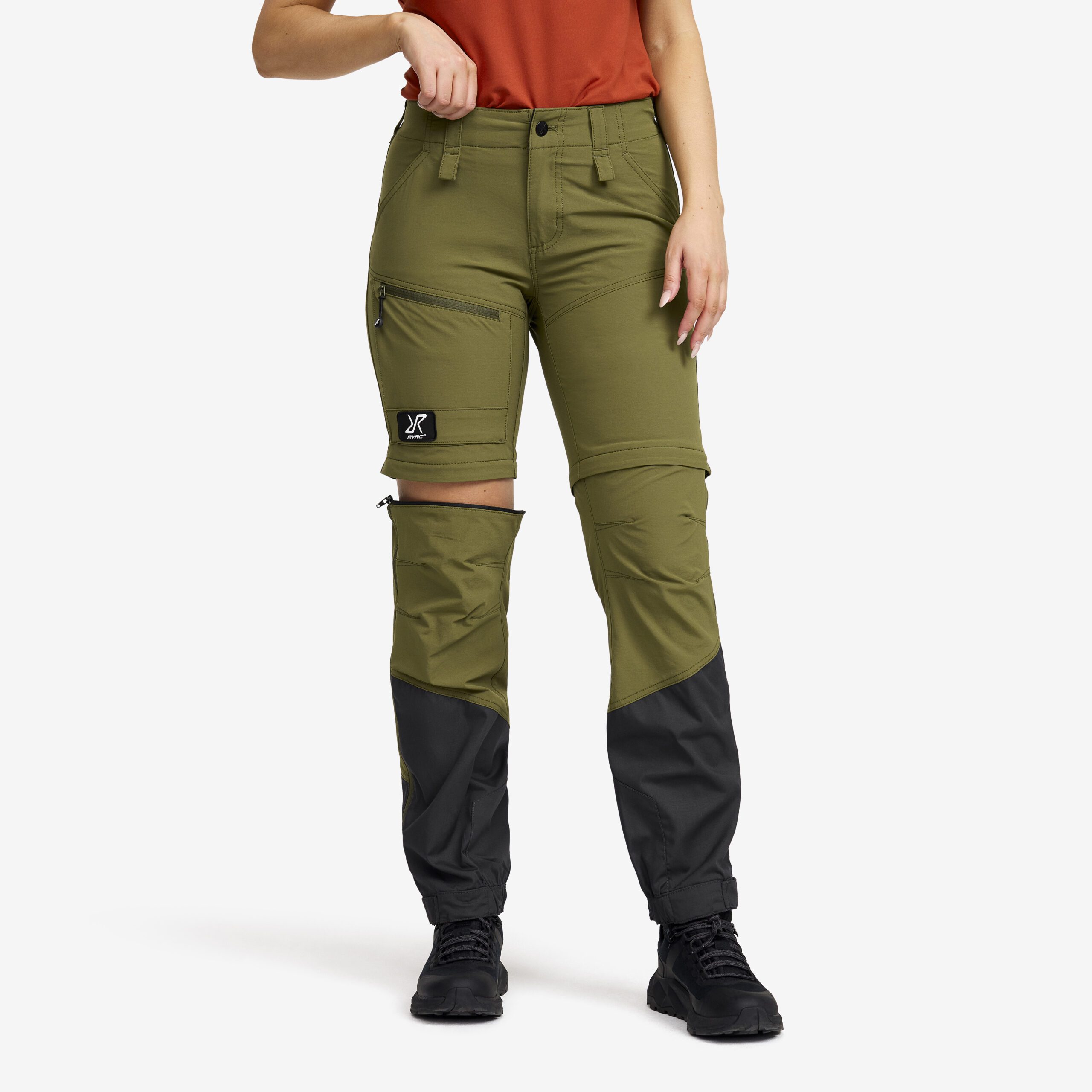 RVRC GP Pro Stretch Zip-Off Pants är våra mellantjocka vandringsbyxor som enkelt kan göras om till shorts när du är på språng. Deras andningsbara material, ventilationsdragkedjorna och de avtagbara benen gör dessa byxor ultimata för vandring i varmt väder. Praktiskt nog går dragkedjorna från nederkanten upp till mitten på låret, så att du kan ta av byxbenen utan att behöva ta av dig vandringskängorna. Materialet med 4-vägsstretch i kombination med slitstarkt canvas vid bensluten erbjuder en perfekt blandning av flexibilitet och hållbarhet. Bensluten kan justeras med knappar och är utrustade med kängkrokar, vilket gör dem smidiga att bära med vandringskängor. Med flera smarta förvaringsmöjligheter, inklusive en lårficka med en inbyggd meshficka för mobilen, kan du enkelt organisera dina viktigaste saker. Ta din vår- och sommarvandring till nästa nivå med RVRC GP Pro Stretch Zip-Off Pants, som ger dig ultimat bekvämlighet, andningsförmåga och flexibilitet när du är i rörelse.