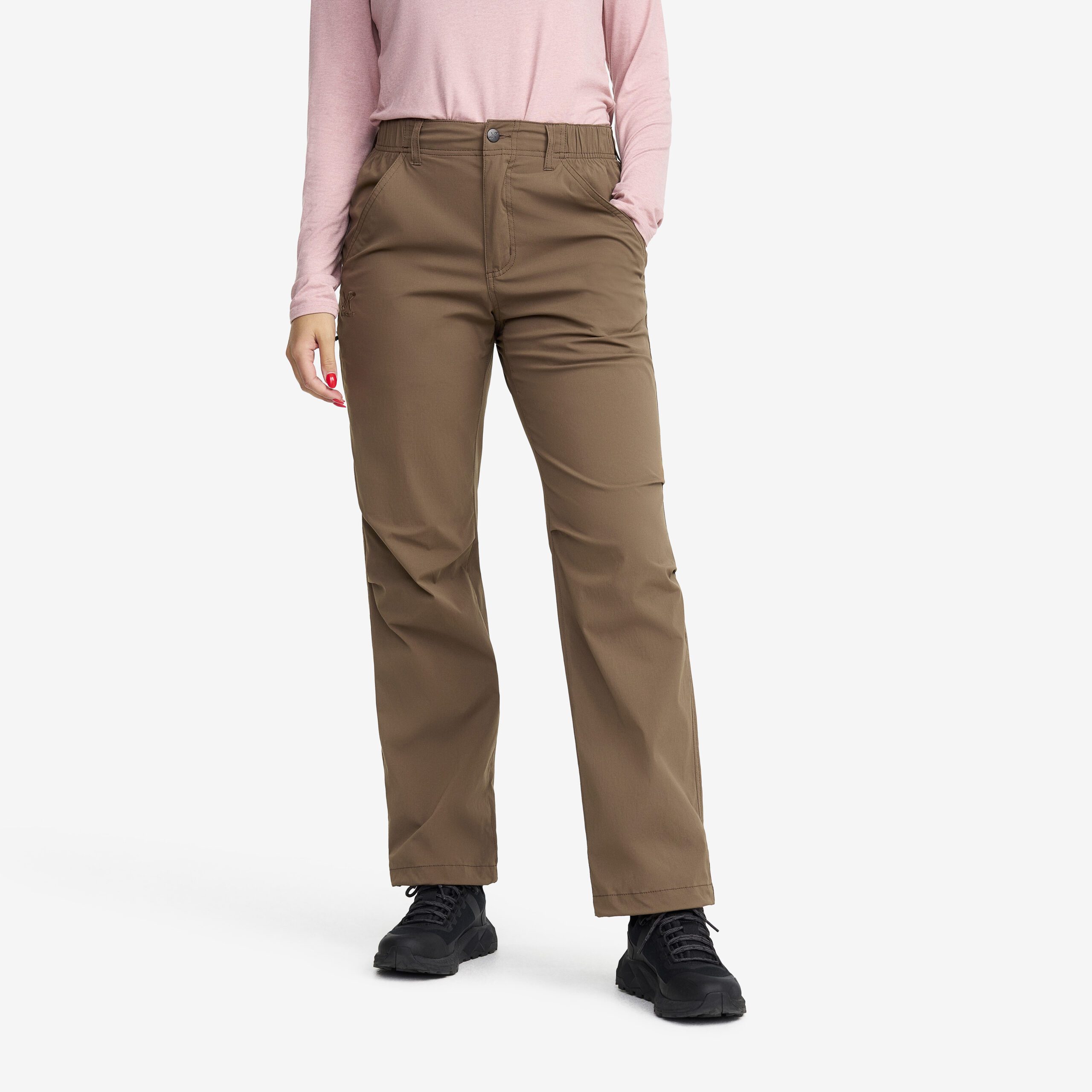 Render Outdoor Pants är ett par lätta, snabbtorkande byxor för kvinnor, huvudsakligen designade för användning i varmare väder. De har en något mer avslappnad passform och ett elastiskt midjeband för maximal bekvämlighet. Dragskon vid bensluten möjliggör för användaren att justera passformen. Med två handfickor, två bakfickor och en lårficka med dragkedja har du gott om utrymme för det du behöver bära med dig. Tack vare byxornas ventilerande och fukttransporterande material så är de ultimata för utomhusaktiviteter med högre intensitet eller i varmare väder.