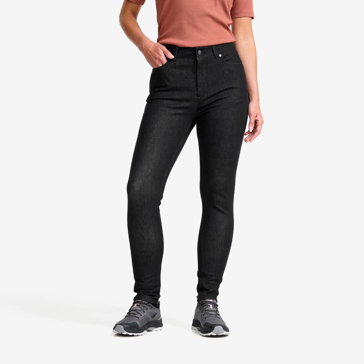 Valley High-Waist Stretch Jeans kombinerar det klassiskt jeansutseende med den flexibla, stretchiga friluftsbyxan. Med en höga midja och en superstretchig passform följer de dina rörelser från morgon till kväll, oavsett var dagen tar dig. Den slitstarka DWR-behandlingen avvisar lätt regn och smuts, och de fem smarta fickorna, däribland en liten dragkedjeficka, håller dina småsaker i tryggt förvar. Valley är det ultimata valet oavsett om du står inför en sväng på stan, en dag på kontoret, eller en härlig skogspromenad.