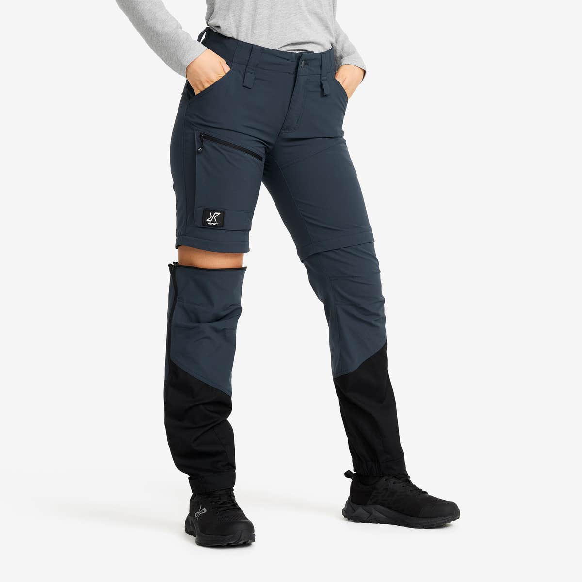 RVRC GP Pro Stretch Zip-Off Pants är våra mellantjocka vandringsbyxor som enkelt kan göras om till shorts när du är på språng. Deras andningsbara material, ventilationsdragkedjorna och de avtagbara benen gör dessa byxor ultimata för vandring i varmt väder. Praktiskt nog går dragkedjorna från nederkanten upp till mitten på låret, så att du kan ta av byxbenen utan att behöva ta av dig vandringskängorna. Materialet med 4-vägsstretch i kombination med slitstarkt canvas vid bensluten erbjuder en perfekt blandning av flexibilitet och hållbarhet. Bensluten kan justeras med knappar och är utrustade med kängkrokar, vilket gör dem smidiga att bära med vandringskängor. Med flera smarta förvaringsmöjligheter, inklusive en lårficka med en inbyggd meshficka för mobilen, kan du enkelt organisera dina viktigaste saker. Ta din vår- och sommarvandring till nästa nivå med RVRC GP Pro Stretch Zip-Off Pants, som ger dig ultimat bekvämlighet, andningsförmåga och flexibilitet när du är i rörelse.