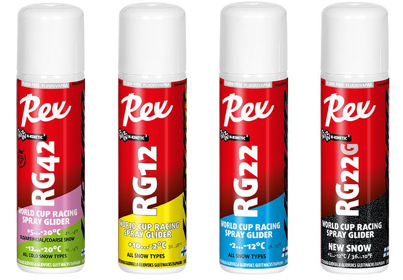 Nyutvecklad fluorfritt koncept från finska Rex med N-kinetic teknik som är riktigt vattenavvisande och ger riktigt bra glid. Rex RG Spray-serie är speciellt framtagna fluorfria versioner av Rex mest avancerade fluor-glidvallor. De har alla tekniska fördelar som Rex HF-vallor har men utan användning av fluor. I låg fuktighet och konstsnö är prestandan nästan i nivå med HF-vallor, med liknande hållbarhet. RG-serie glidvallorna är riktiga race-vallor och används med fördel på tävlingar för att maximera glidet. Rex N-KINETIC™ är en teknik där nanopartiklar används i vallan för att bilda en hydrofob ytstruktur som är väldigt vattenavvisande och ökar även smutsavvisningen. RG 12 Yellow +10/-2RG 22 Blue -2/-12RG 22 Graphite +/-12RG 42 ”UHW” +5/-20 Hård glidvalla som tål högt slitageSå här gör du:Skaka burkenGnid ut på glidzonenLåt torka 20min (ett MÅSTE!)Nylonborsta