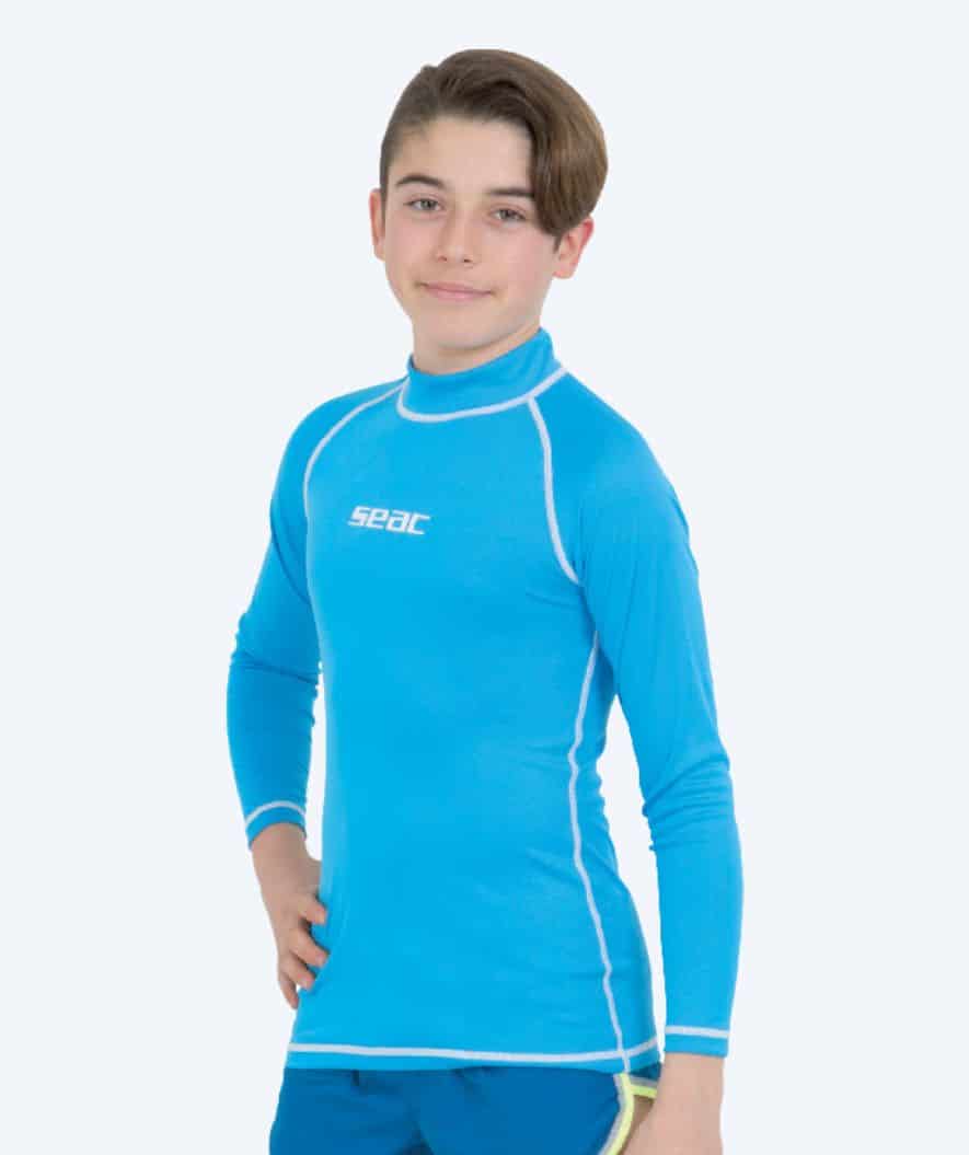 Vi är stolta över att presentera SEAC UV-tröja för barn – T-Sun Long – Blå/vit, en lätt och funktionell UV-tröja designad för pojkar som vill ha effektivt solskydd, hög komfort och full rörelsefrihet vid vattenaktiviteter. Denna långärmade UV-tröja är idealisk för strand, pool, snorkling och andra vattensporter där både skydd och komfort är avgörande. Tröjan är utvecklad för att sitta tätt mot kroppen utan att strama, så den känns naturlig både i och utanför vattnet. Produktfördelar: * UV-skydd: Tröjan erbjuder UPF 50+ skydd mot solens skadliga UV-strålar och hjälper till att minska risken för solbränna vid längre vistelser i solen. * Bekväm och flexibel passform: Det elastiska materialet formar sig efter kroppen och ger en tight passform som inte fladdrar i vattnet. Samtidigt säkerställer tygets lätthet och andningsförmåga hög komfort, även på varma dagar. * Skydd mot irritation: UV-tröjan fungerar också som skydd mot skav från simutrustning samt lätt kontakt med sand, sten och havsbotten. Platta sömmar minimerar irritation mot huden. * Lämplig för aktiv användning: Perfekt för simning, snorkling, paddleboard och andra vattenaktiviteter där du behöver både solskydd och rörelsefrihet. * Snabbtorkande material: Materialet torkar snabbt och känns lätt, vilket gör tröjan behaglig att bära både i och efter vattnet. SEAC T-Sun Long för pojkar är ett uppenbart val för dig som vill ha en pålitlig UV-tröja med fokus på funktionalitet, komfort och skydd, utan att kompromissa med rörelsefriheten. Gör dig redo för sommarens vattenaktiviteter med en UV-tröja som arbetar tillsammans med dig både över och under ytan. SKU: 26796