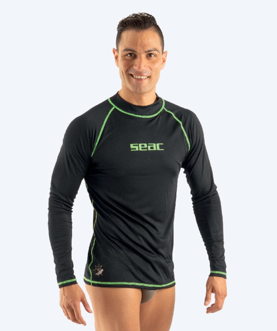 Vi är glada att presentera Seac Rash Guard T-Sun Herr Långärmad – en UV-tröja för män som kombinerar effektivt solskydd, komfort och funktionalitet för alla dina vattenaktiviteter. Denna långärmade UV-tröja är perfekt för dagar på stranden, snorkling, fridykning och andra typer av vattensporter. Produktföredelar för T-Sun Long för män: * UV-skydd: Erbjuder UPF 50+ solskydd som effektivt skyddar huden mot solens skadliga UV-strålar under långa dagar i solen. * Anti-abrasion: Skyddar överkroppen mot skav från utrustning, steniga bottnar eller kontakt med maneter och andra vassa ytor. * Bekväm passform: Materialet är elastiskt och följer kroppen nära, så tröjan sitter som en ”andra hud” utan att bilda luftfickor eller veck. * Praktisk design: Platta sömmar minskar irritation mot huden, vilket gör den bekväm att bära både i och utanför vattnet. * Mångsidig användning: Utmärkt för simning, surfing, snorkling och andra vattensporter där både solskydd och rörelsefrihet är viktiga. Miss inte chansen att uppleva en bekväm och funktionell UV-tröja som effektivt skyddar dig mot solen samtidigt som den garanterar rörelsefrihet och slitstyrka för alla dina vattenaktiviteter. Beställ din SEAC UV-tröja för män – T-Sun Long idag och gör dig redo för sommarens många äventyr! Specifikationer: * UPF 50+ solskydd * Anti-abrasion material * Elastisk och tät passform * Platta sömmar för komfort * Lämplig för snorkling, fridykning och vattensport SKU: 26806