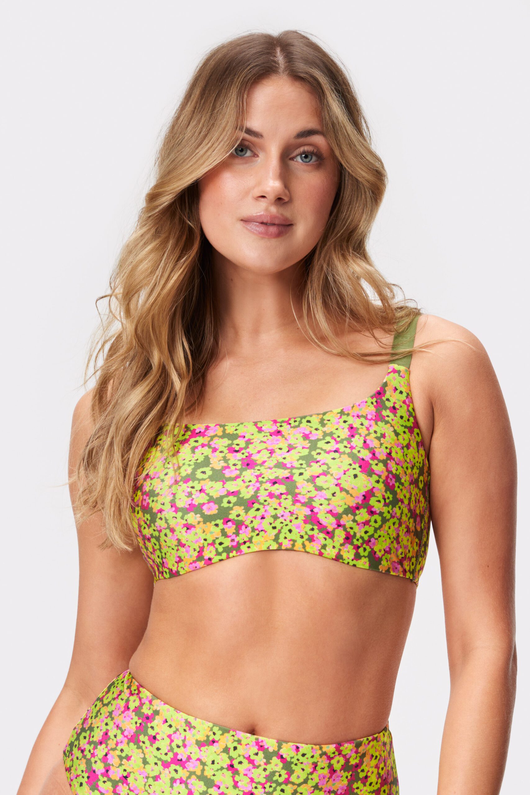 Active Bikini Top är en mönstrad bikiniöverdel med medium support. Bikiniöverdelen är designad med fastsydda kupor för extra komfort och en helfodrad insida för att minimera transparens. De breda axelbanden är justerbara och elastiska, vilket gör att du kan anpassa passformen utifrån dina önskemål. Matcha den med vår blommiga bikinitrosa med hög midja för en komplett look som passar till aktiva dagar på stranden.