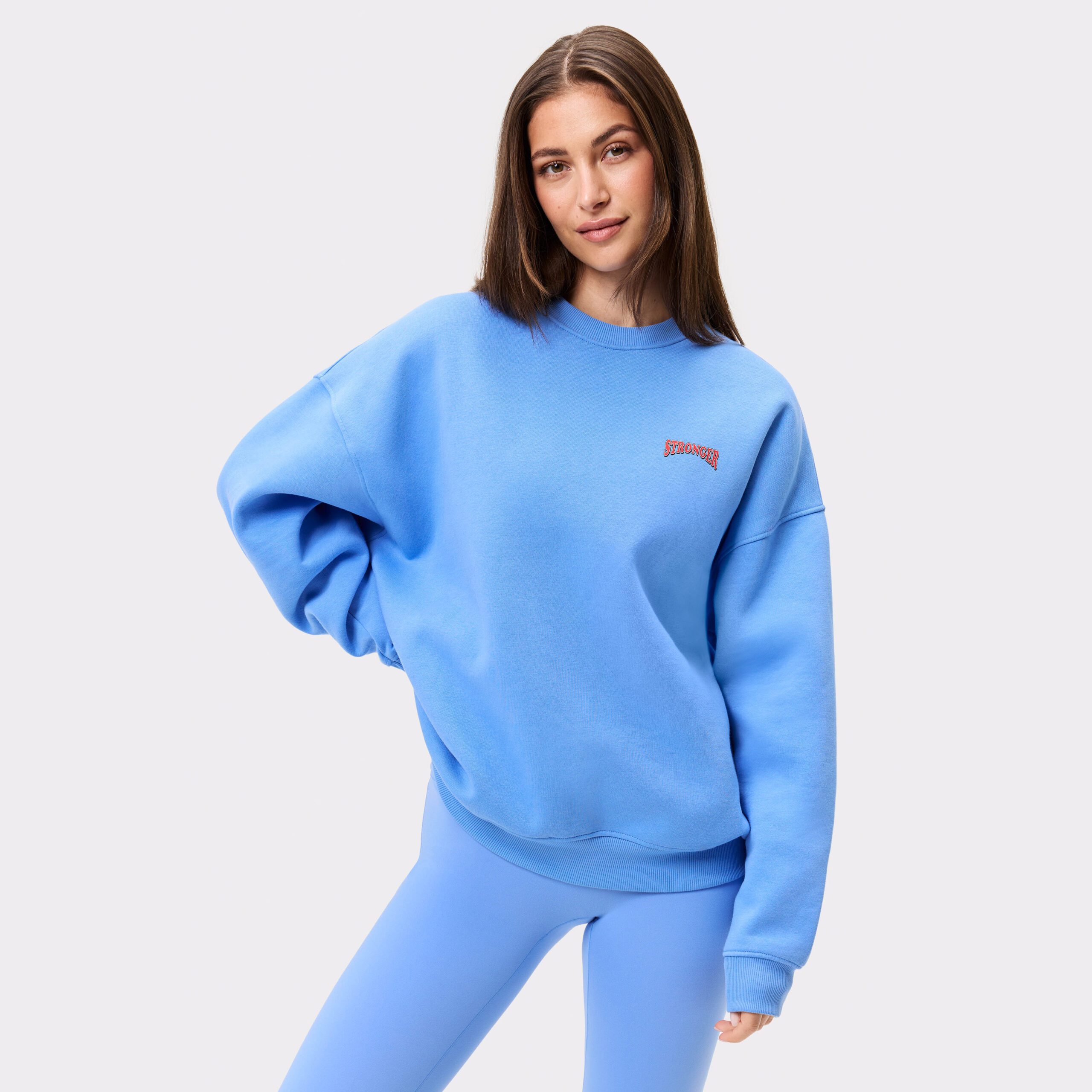 Comfy Sweatshirt från Stronger med Oversize fit och andningsbar komfort i blått. Mjuk, borstad insida i 67% Ekologisk bomull och 33% Återvunnen polyester. Perfekt för vardag och vila. Shoppa nu!