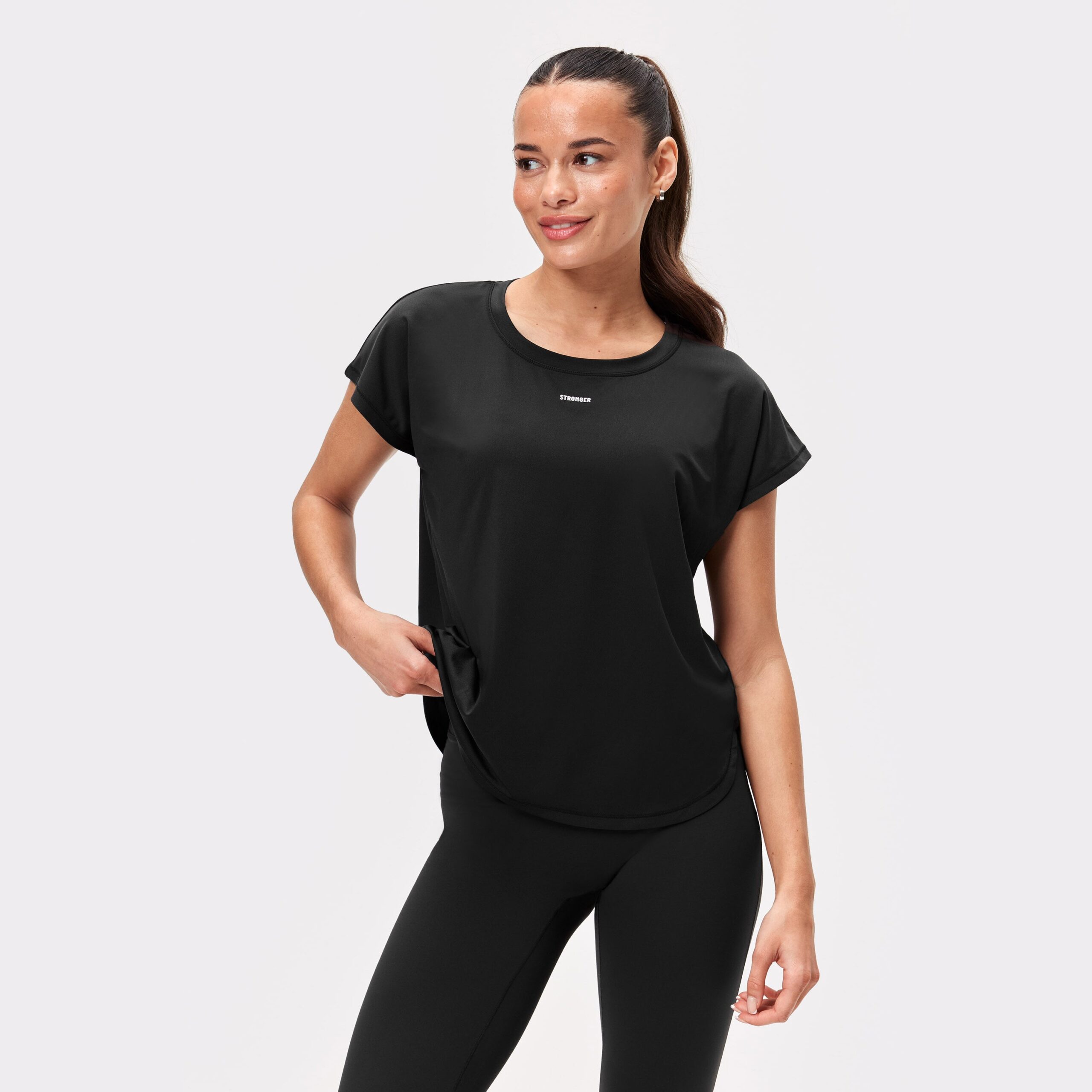 Köp Stronger’s Drop T-shirt i Black. Återvunnen polyester med lös passform. Svettavvisande, snabbtorkande och andningsbar för intensiv träning. Handla nu!