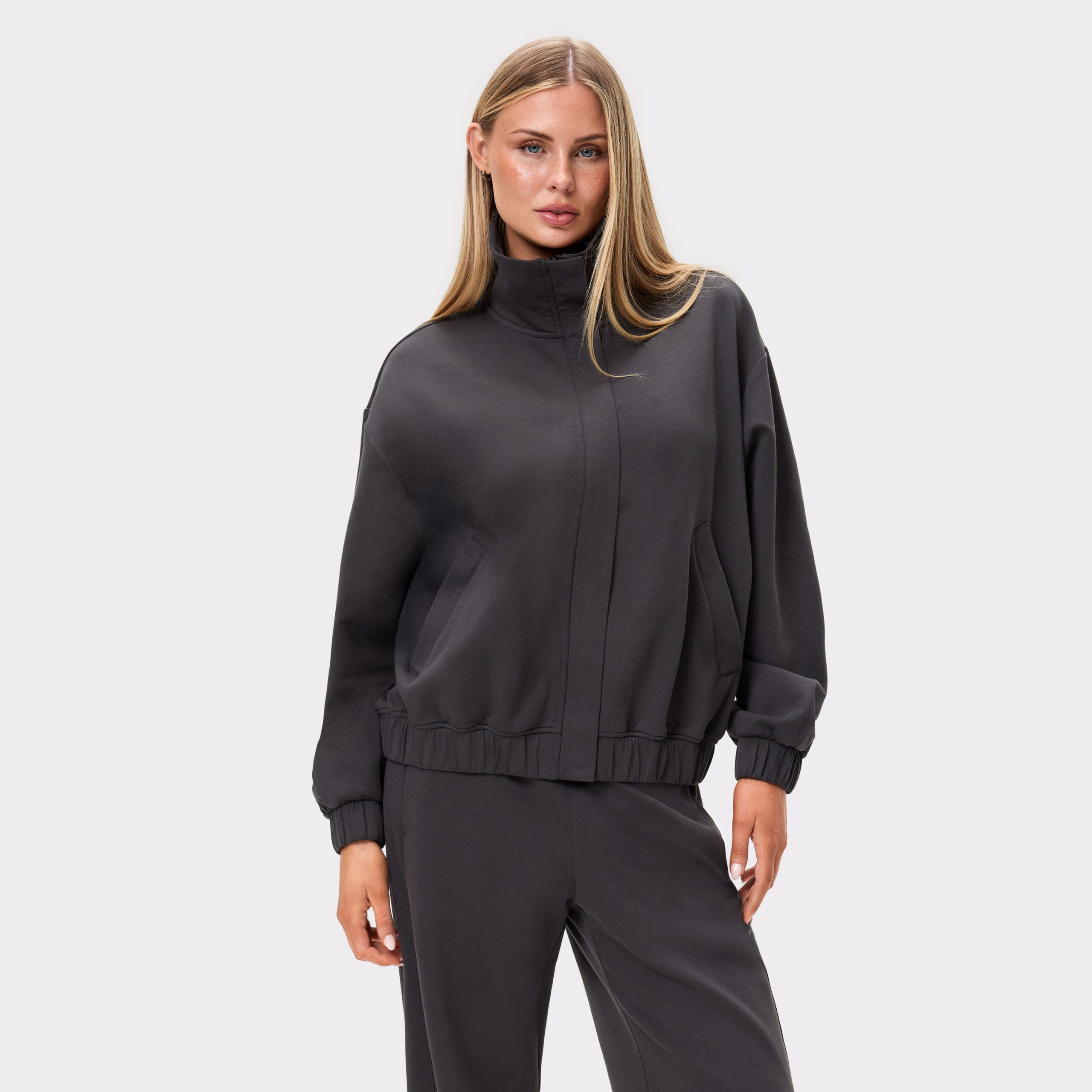Köp Stronger’s Fluid Full Zip Jacket i Bristol Black. Tillverkad av återvunnen bomull-modal blandning med oversize fit och flytande draperat tyg med slät finish. Handla nu!
