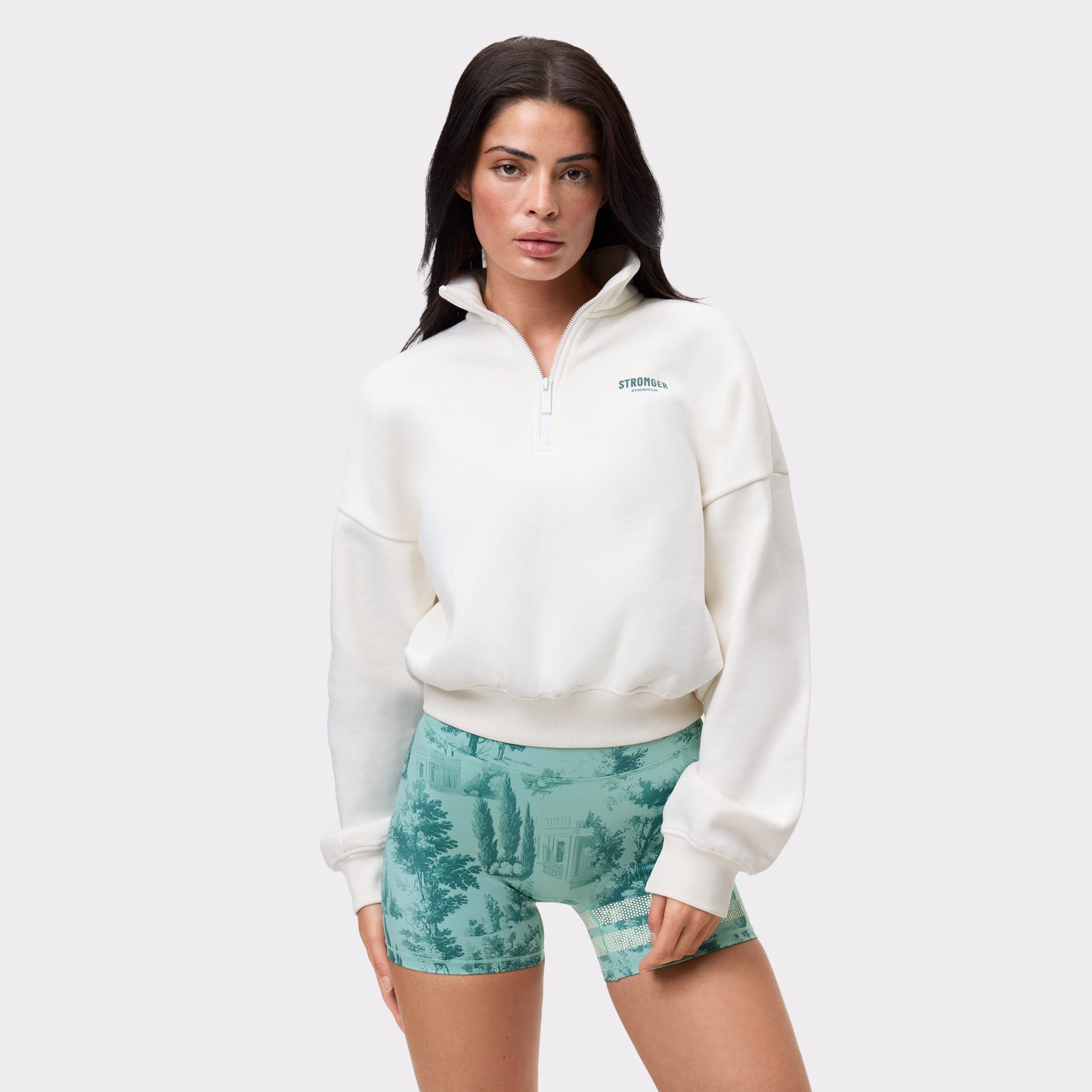 Köp Stronger’s Half Zip Sweatshirt i White. Ekologisk bomullsblandning, croppad längd, borstad insida och lös passform – perfekt för lager på lager. Handla nu!