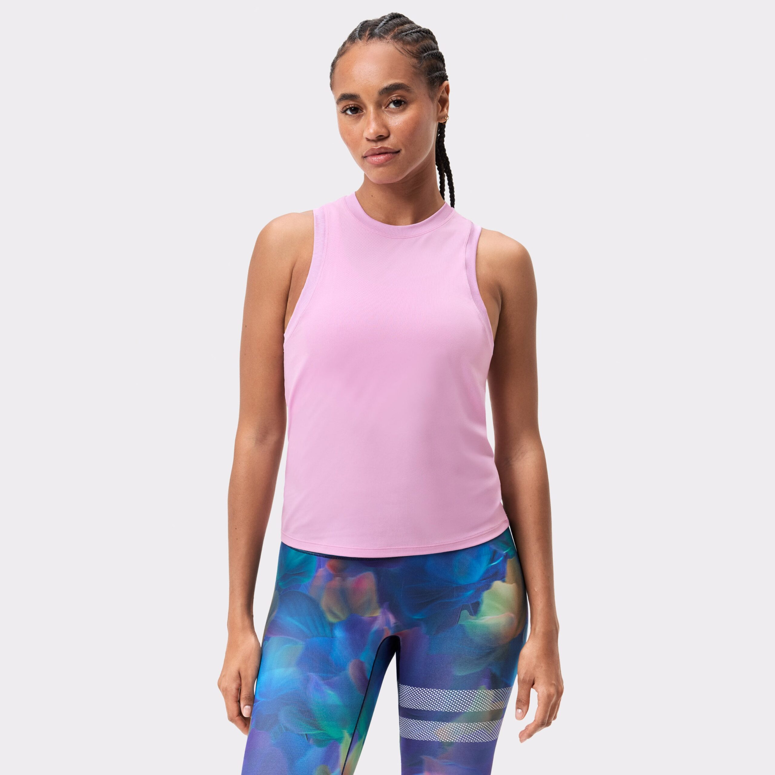 Stronger Relaxed Tank i rosa: andningsbar, svettavvisande och snabbtorkande. 90 % återvunnen polyester, normal passform med Ribbade detaljer—idealisk för träning och vardag.
