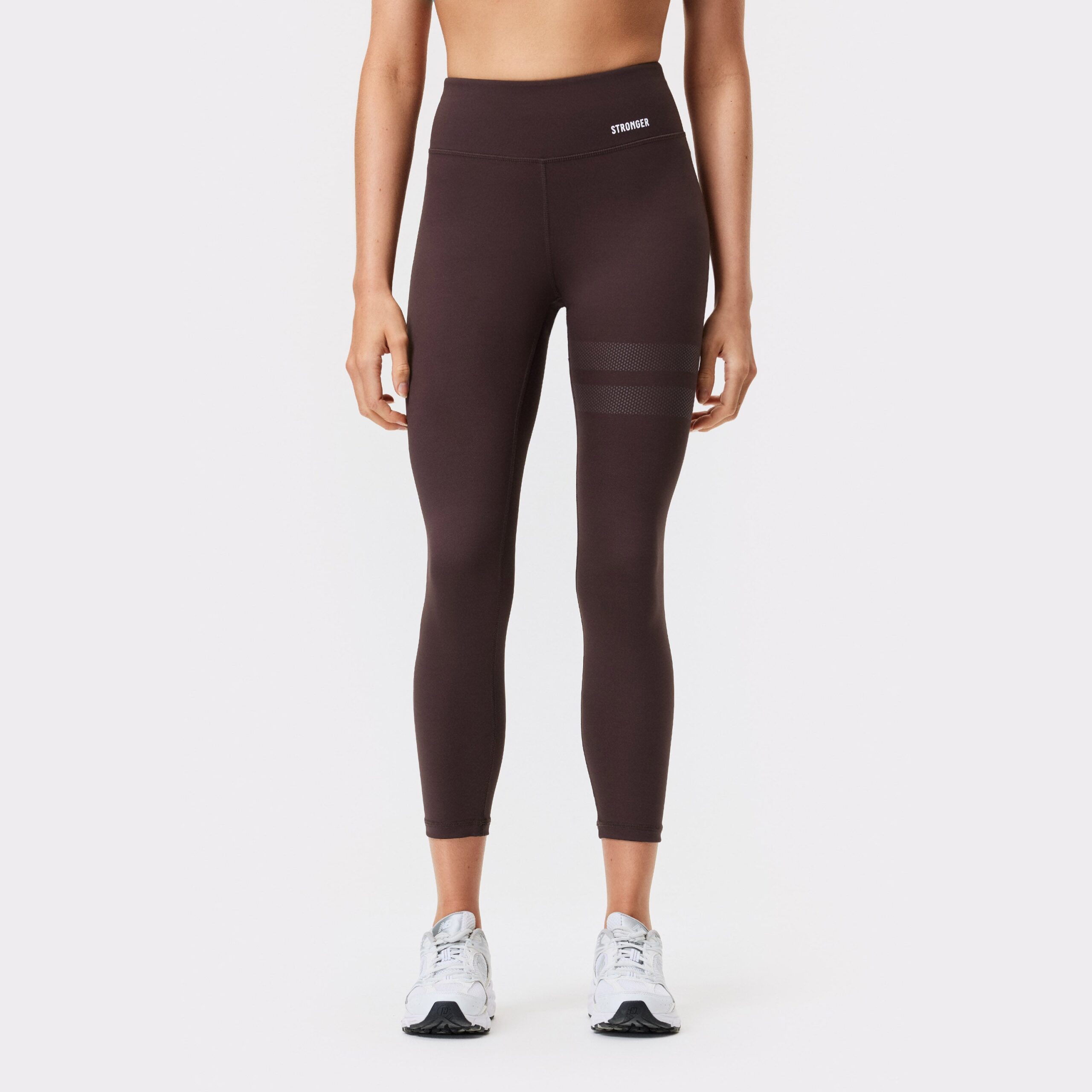 Köp Stronger’s Signature 7/8 Tights i Black Coffee. Hög midja, squat-proof design och tillverkad av återvunnen polyester med dold ficka baktill. Perfekt för träning. Handla nu!