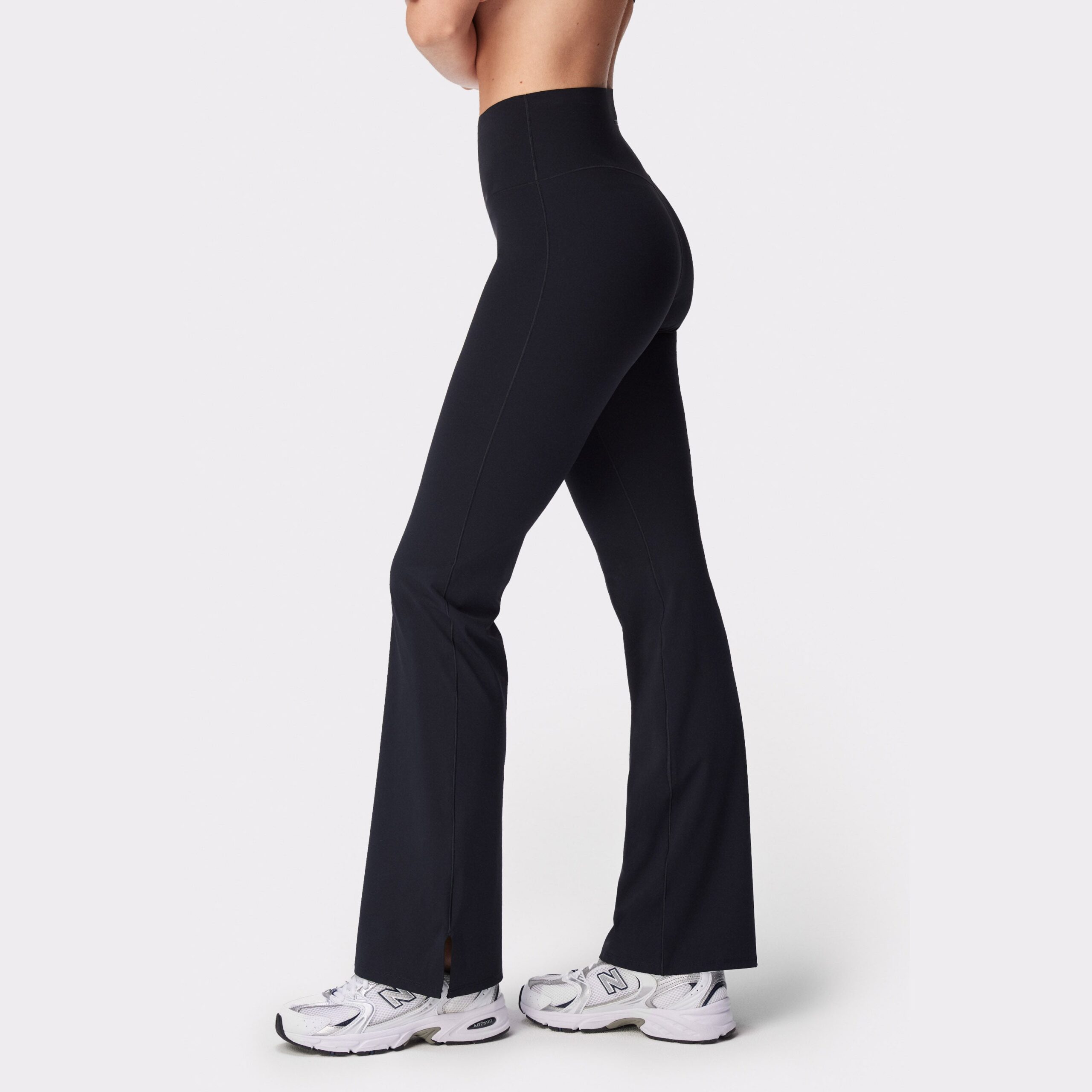 Shop Stronger’s Sleek Flared Leggings in Black. Made with recycled polyamide, featuring high waist and squat proof design. Shop now!