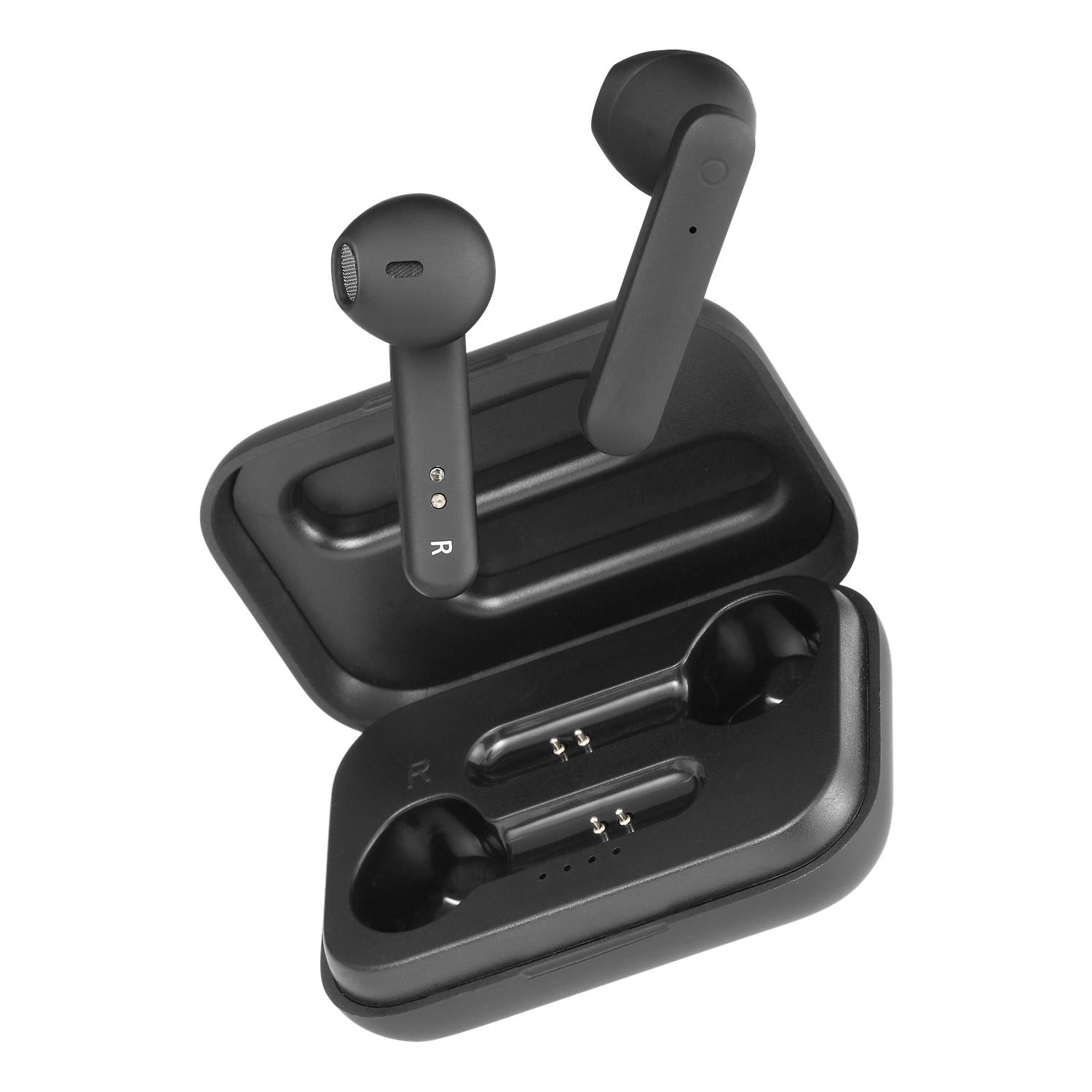 STREETZ True Wireless Stereo hörlurar med mikrofon och touch knappar för smidig hantering av samtal och media. Semi-in-ear hörlurarna är tillverkade med en ergonomisk passform för att sitta bekvämt i dina öron även vid långvarig användning. Anslut enkelt via Bluetooth 5 för att lyssna på din favoritmusik, podcast eller använd som handsfree i upp till 4-timmar, 12 timmar med det medföljande laddningsetuiet.<br /><br />True Wireless Stereo hörlurar<br />Standby-tid: Cirka 20 timmar<br />Impedans: 16 O<br />Trådlös räckvidd: 10 m<br />Känslighet: 98 dB ± 3 dB<br />Laddningstid: Cirka 2 timmar<br />Mikrofon & touch-knappar<br />Laddningsport: USB Micro-B (5 V DC, 500 mA)