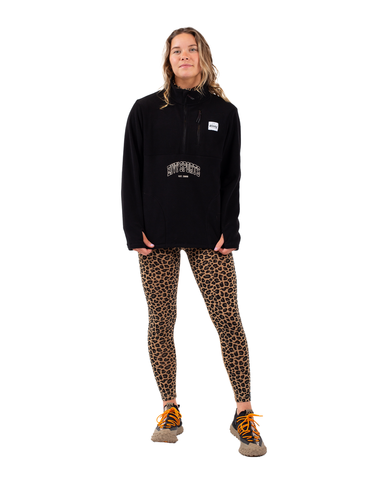 Mjuk och varm fleecetröja med vävd patch och tumhål, med Eivys orginella förlängda ryggslut. Dragkedjeförsedda fickor.