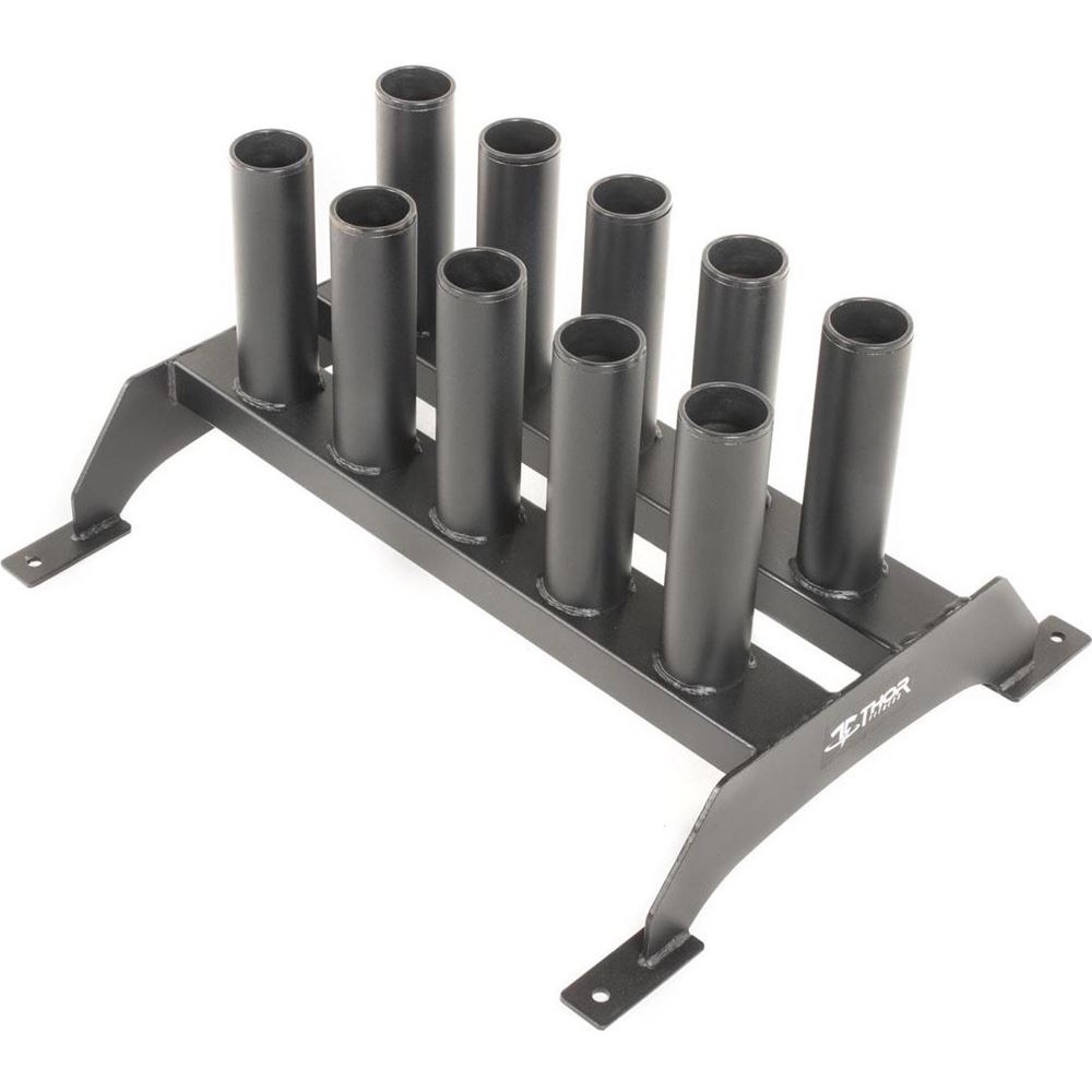 Med Thor Fitness Barbell Stand så får du ett robust skivstångställ som har 10st platser för skivstänger (50mm) och som står stadigt även då det är fullt lastat. Kvalitet: Kommersiell Vikt: 12,3 kg Bredd: 630 mm Höjd: 320 mm Längd: 530 mm