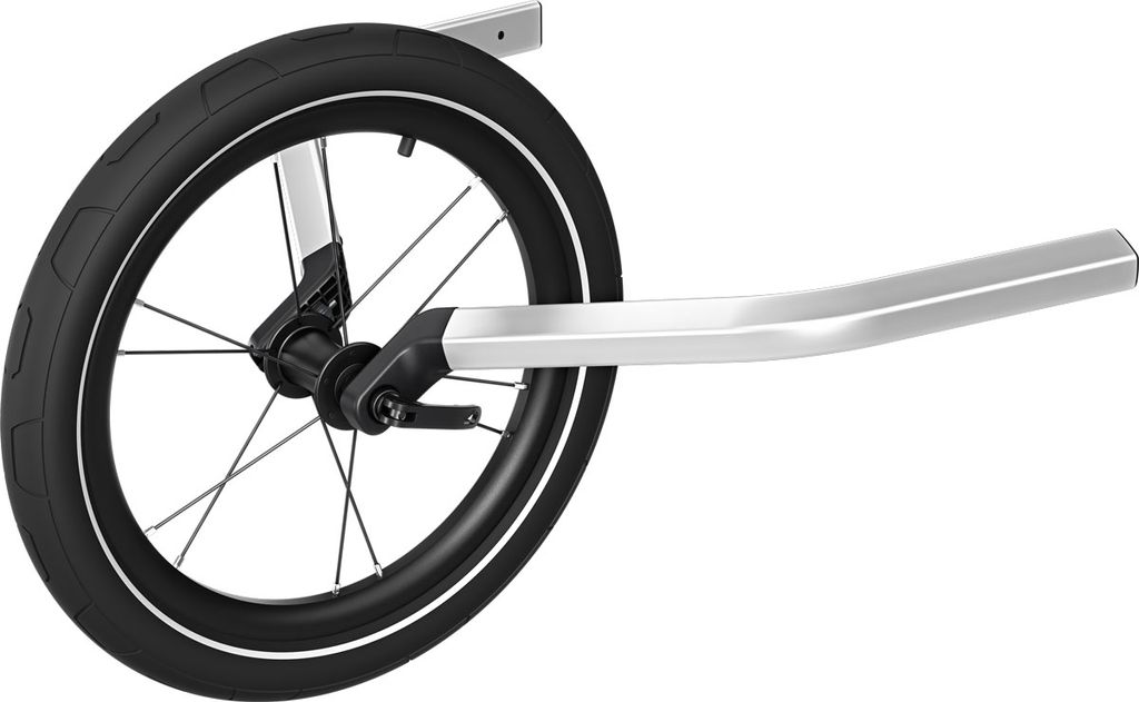 Thule Chariot Jog Kit Double är ett kit för att förvandla Thule Chariot till en joggingvagn med hög prestanda.Ingår: hjularmar av aluminium och ett 16-tumshjul med snabbkoppling. För vagnar med två säten.