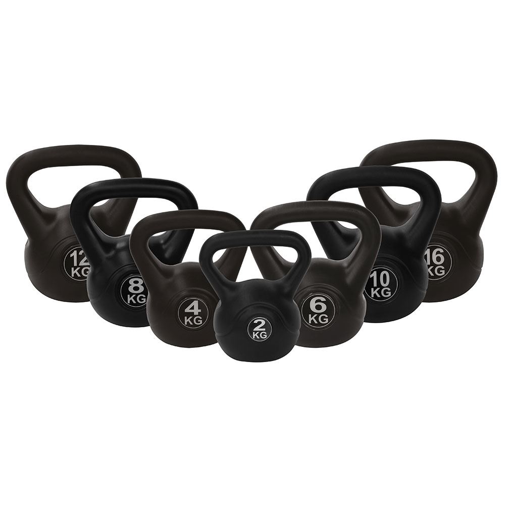 Kettlebells har med tiden blivit ett mer och mer populärt träningsredskap, oavsett om man tränar hemma eller i gymmet. En kettlebell-träning är ett snabbt och effektivt sätt att träna alla muskler i kroppen. Kettleklockan är därför också känd som "komplett gymmaskin". Tunturis Kettlebell är gjord av PVC och fylld med sand. Billigare än gjutjärn, men du kan göra samma övningar med det. Perfekt för en total träning: förbättra din muskelstyrka, koordination, flexibilitet och kärnstabilitet Lätt att rengöra Lätt att använda och med många träningsalternativ