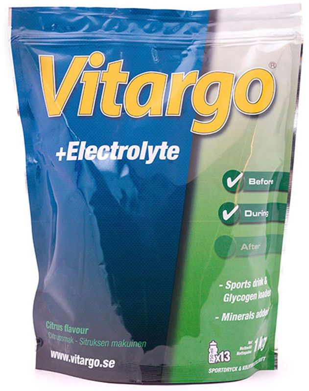 Utan tvivel från oss… marknadens bästa sportdryck! Inget socker, bara Vitargo kolhydraten i stora mått och det är nästan som att ”ta dropp”…så snabbt får du ny energi ut i kroppen. Vitargokolhydraten har genomgått två vetenskapliga studier vid Karolinska Institutet där det bl.a. visade sig att denna kolhydrat passerar magen 80% snabbare än vanliga sportdryckskolhydrater. Vitargo +Electrolyte innehåller dessutom elektrolyterna(salter) Magnesium, Kalcium, Kalium och Natrium som säkerställer mineralbalansen i kroppen. Innehåller inget socker:Vitargo +Electrolyte innehåller inget socker (enkla kolhydrater eller monosackarider) vilket främjar snabb passage genom magsäcken. Prova denna ovanligt effektiva sportdryck med märkbar effekt! Du kommer att känna dig mer uppvätskad och hålla tempot upp en längre tid. Finns också som 1kg, 2kg eller 5kg hink.Smak: Citrus eller GRAPE Tillredning:Fyll en flaska till 1/3 (ca 2 dl) med vatten.Tillsätt pulvret och skaka kraftigt under 1-2 minuter.Fyll sedan med resterande mängd vatten till slutvolym (7-8 dl).OBS! SKAKA KRAFTIGT!