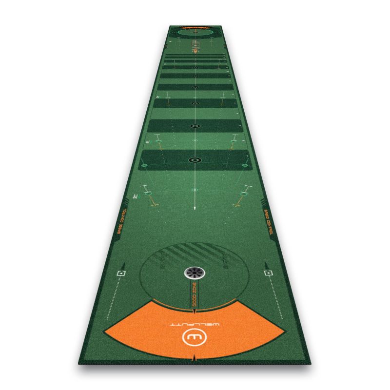En bra putt är resultatet av god sikt och fart. Wellputt-mattan låter spelare förbättra sin noggrannhet i en riktning och hitta den bästa farten för att göra en bra putt i den andra riktningen.